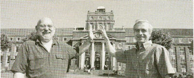 "Georg Mendzingal (rechts) ist ein super Lehrer, der viel vermittelt, aber auch Spaß verbreitet. Wenn man einigermaßen schlau ist und gut auf-passt, kann man sich bei ihm so viel lustig machen, wie man will. Dumme duldet er nicht, diese haben bei ihm keine Freiheiten, und das ist auch gut so. Manchmal ballert er mit seiner "Kartoffel-Kanone" rum und redet Sachen, die keinen Sinn ergeben. Nun ein paar Kult-Sprüche: "Dumm ist, wer Dummes tut" -"So was kommt von so was her" -"Bist du blöd?" - "Du bist doch kein Affenkind".