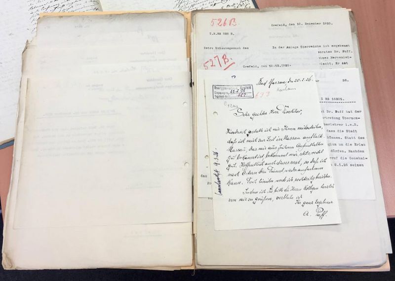 "Sehr geehrter Herr Direktor. Hierdurch gestatte ich mir Ihnen mitzuteilen, daß ich mich zurzeit in Nassau aufhalte." Mit diesen Worten beginnt der rechts abgebildete Brief von Studienrat Dr. Puff, den er am 20. Februar 1926 an das "Realgymnasium Krefeld" schickte. Der Herr Studienrat ist in Nassau zur Kur und von seinem Dienst an der Krefelder Schule beurlaubt. Für ihn kommt, auch das ist bis heute dokumentiert, der "Junglehrer Hans Rink". Er ist nur die zweite Wahl, wie es einem Schreiben des "Provinzialschulkollegiums" vom 11. Januar 1926 zu entnehmen ist. Der gewünschte "Seminaroberlehrer Norbisrath" hatte "zu hohe Forderungen".