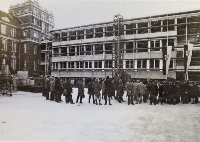 Herr Hans-Wolfgang Stockhausen (langjähriger Vorsitzender der Förderverein) schreibt in seinen Erinnerungen „Das (die Errichtung des Neubaus (Erg. d. Red.) veranlasste die Schüler-Mitverwaltung in ihrer Reife und klugen Weitsicht, lautstark den Abriss des gesamten Altbaues zu fordern.“