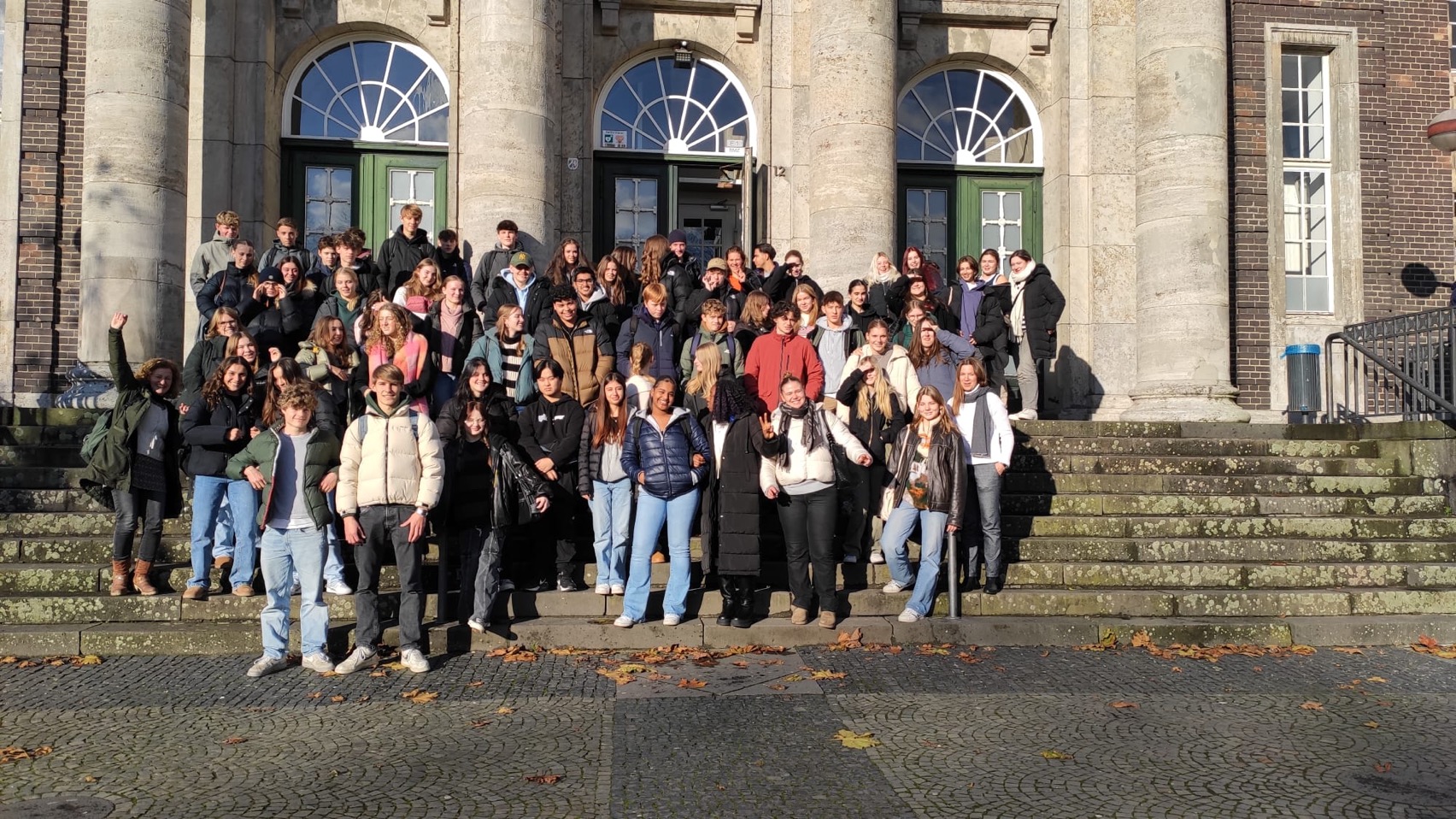 Auch in diesem Jahr kamen zahlreiche Schüler:innen vom Aremtheem College Thomas a Kempis im Zuge des Partneraustausches mit Arnhem zu Besuch und sorgten mit ihrer fröhlichen, offenen und aufgeweckten Art für frischen Wind am Moltke. Susanne Zühlke, Verantwortliche und Organisatorin des Austauschs, sorgte für ein abwechslungsreiches Tagesprogramm, welches die Schülergruppe aus den Niederlanden, die Moltke-Schüler:innen und die Lehrerinnen der Gastschule durch den Tag begleitete.