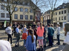 Am Dienstag nach dem Frühstück haben sich ein paar testen lassen und zum Glück waren alle negativ. Wir haben danach ein paar Mal geprobt und sind um 13:15 Uhr zur Xantener Stadt gelaufen. Da sind wir in den Dom gegangen, welcher sehr schön und interessant war. Ein paar Kinder hatten ihre Kameras dabei und machten wunderschöne Fotos. Als nächstes gingen wir in die Stadt und aßen Eis, weil das Wetter sehr schön war. In der Stadt gab es eine Frau und einen Mann, die gesungen und Gitarre gespielt haben. Sie sangen für ein paar Mädchen das Lied "Perfect“ von Ed Sheeran. Als wir zuhause waren, gab es Abendessen. Nach der Probe konnte man mit Herrn Bock eine Nachtwanderung machen, Fußball spielen, Wizard mit Frau Dederichs spielen oder einfach im Zimmer bleiben. Die meisten haben erst Fußball gespielt, dann die Nachtwanderung gemacht und dann Wizard gespielt. Um 22:00 Uhr waren wir alle kaputt und sind ins Bett gegangen.