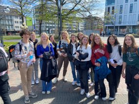 Nach der fünften Stunde brachen wir gemeinsam in die Stadt auf, wo wir uns in kleine Gruppen aufteilten. Unser Ziel war es, unseren neuen Freunden die Stadtmitte von Krefeld zu zeigen und ihnen einige der bekanntesten Sehenswürdigkeiten zu präsentieren. Unsere Stadt-Rallye führte uns zum Kaiser Wilhelm Museum, verschiedenen Cafés und Läden, sowie zum Schwanenmarkt. Einige unserer Austauschschüler waren sehr interessiert an der Geschichte der Stadt und stellten viele Fragen, während andere lieber die Gelegenheit nutzten, um in den Läden zu stöbern.