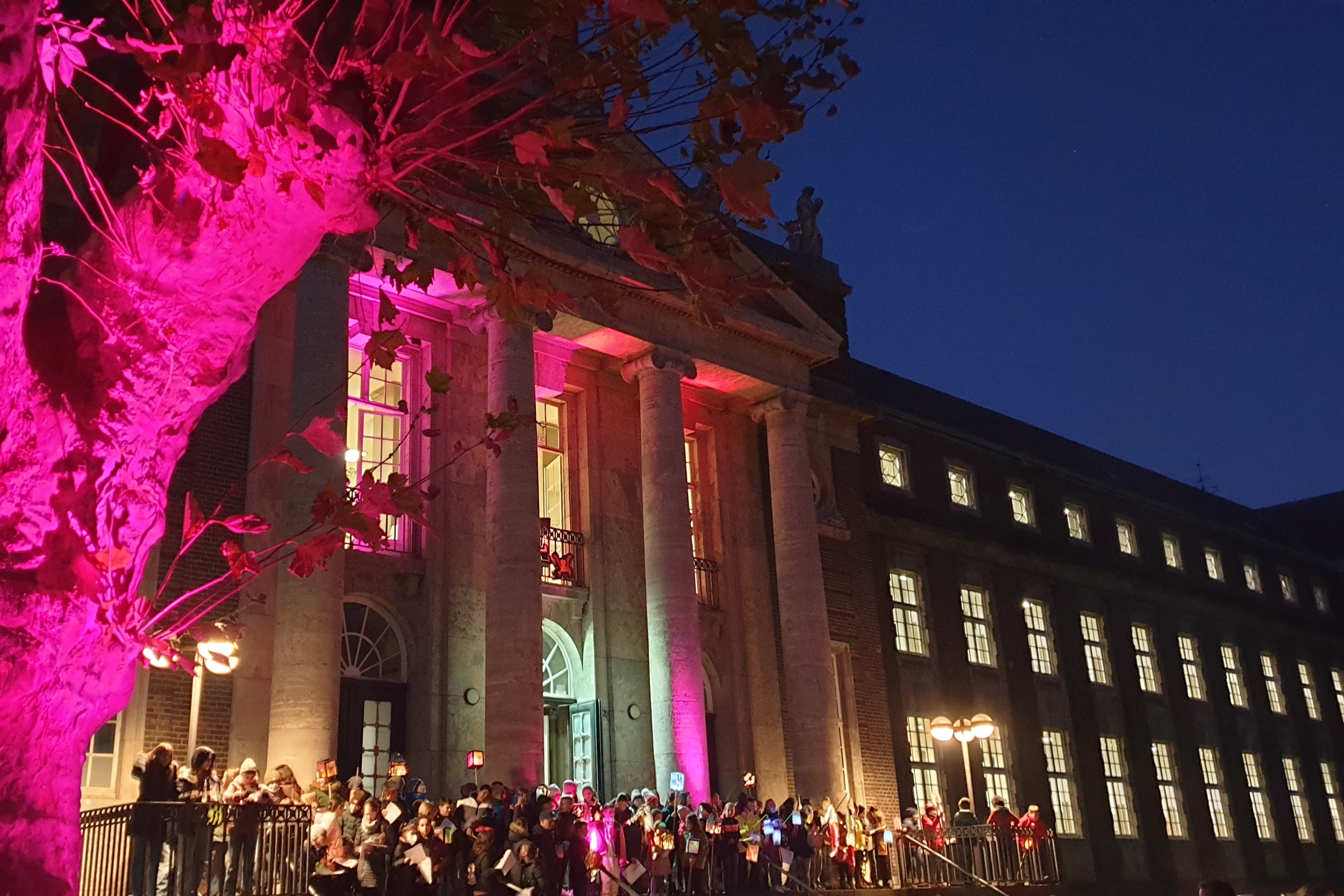 Am Mittwoch, den 10.11.2021, stand der Moltke-Familie die Freude im Gesicht: Endlich wieder St. Martin! Um 17:30 Uhr begann die abendfüllende Feier vor dem festlich geschmückten und illuminierten Portal. Ein Meer von Laternen, singende Kinder, Bläsermusik und Glühweinduft in der Luft – das sind die Zutaten für einen gelungenen Martinsabend am Moltke. Wir danken allen Beteiligten, die diesen schönen Abend möglich gemacht haben: Allen voran der Q2, die für das leibliche Wohl gesorgt hat, im Besonderen Clarissa März als St. Martin und Eric Berger als Lumpenmann, Herrn Stocks für die Organisation der Zelte und der Fachschaft Musik für die musikalische Gestaltung des Abends.
