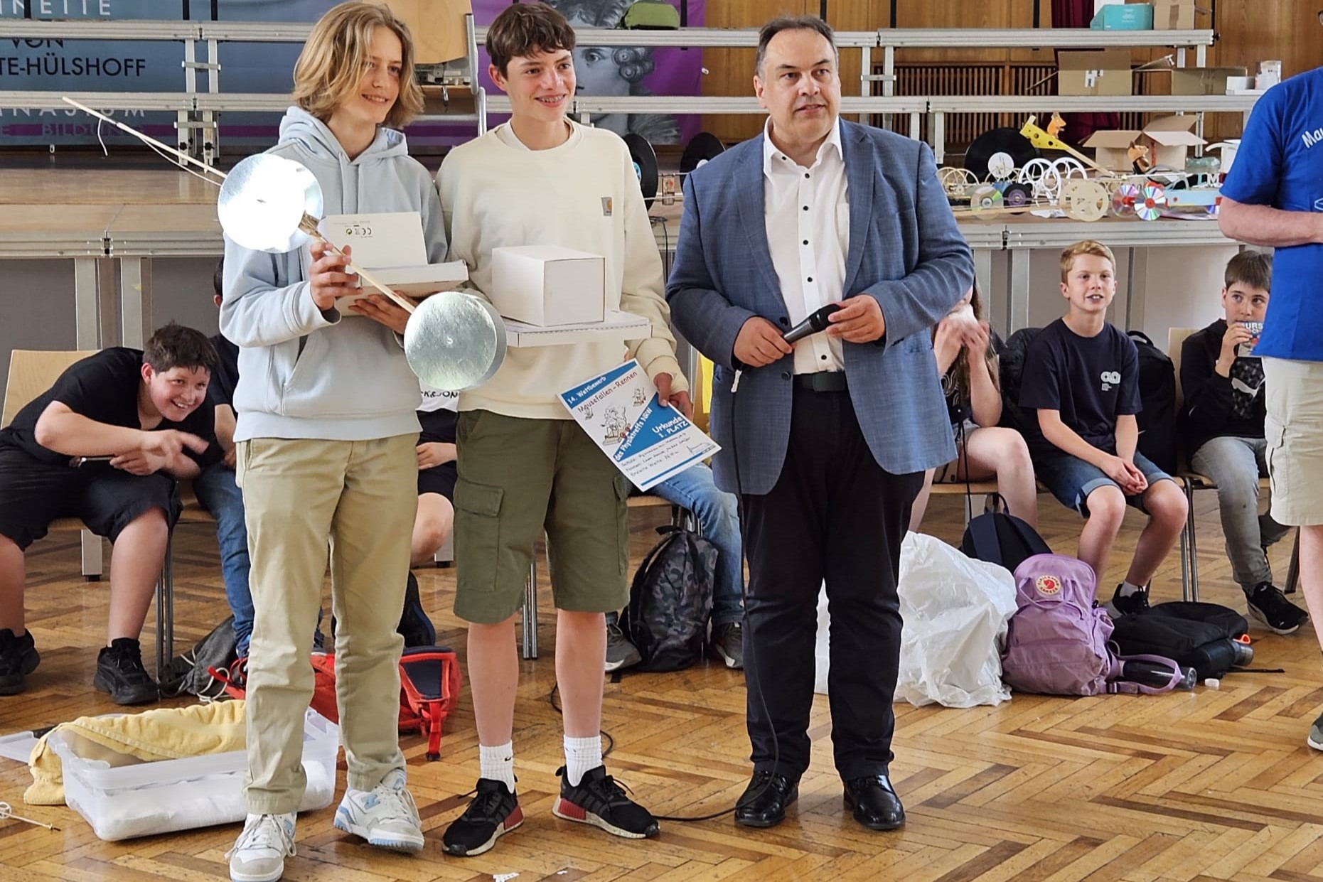 Für den betreuenden Physiklehrer, Herrn Meskendahl, war es ein neuer didaktischer Ansatz, die Konstruktion eines „Mausefallenautos“ in den Unterrichtsmittelpunkt der Jahrgangsstufe 8 zu stellen, um so die Themen Kraft, Reibung, Energie, Geschwindigkeit und Hebel mit den Schülerinnen und Schülern zu erarbeiten. Mit Erfolg!