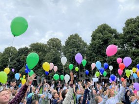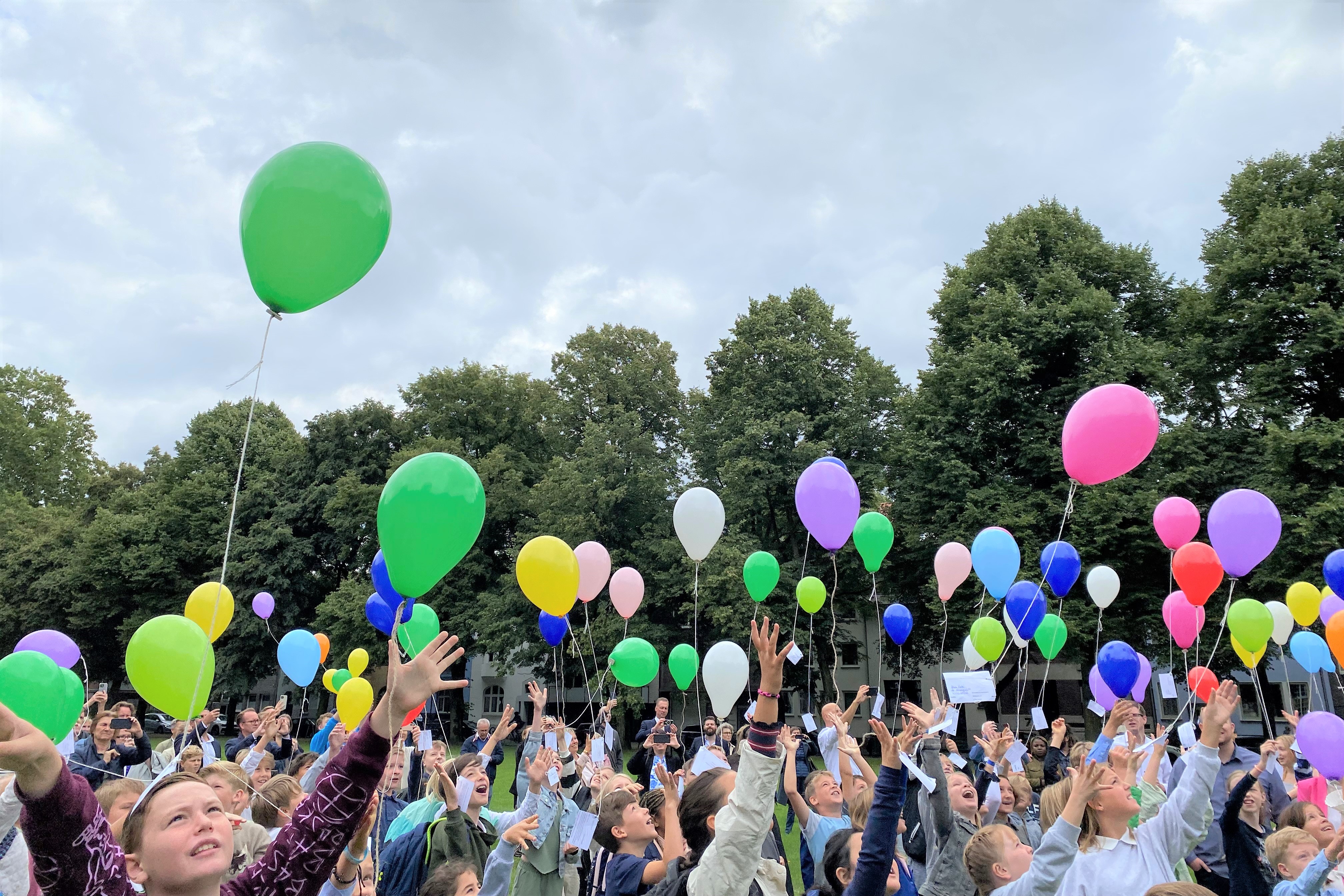 Mit dem ebenfalls traditionellen Ballonwettbewerb endete der Einschulungsvormittag – jetzt sind alle gespannt, welcher Ballon den weitesten Weg zurücklegen wird.