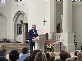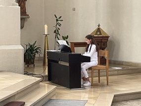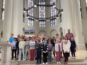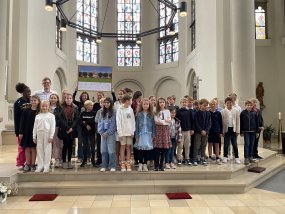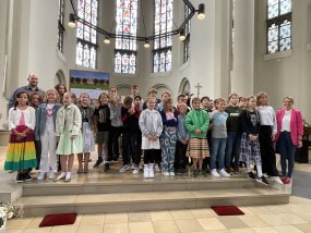 Am Beginn des Einschulungstages stand der Gottesdienst – in diesem Jahr gestalteten ihn Schüler der achten Klasse. Sie alle haben jüngere Geschwister unter unseren „Neuen“ und begrüßten diese im Namen der ganzen Moltke-Familie mit vielen anregenden Denkanstößen zu Thema „Gottes Segen“.