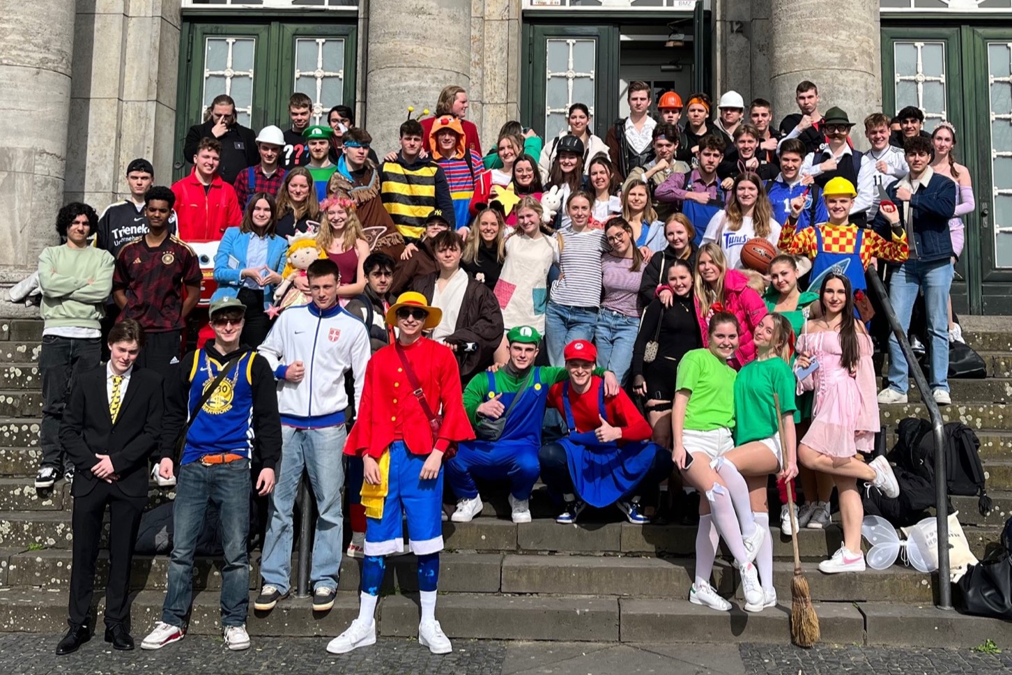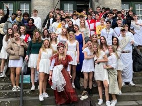 Wie jedes Jahr wurde allen Schülerinnen und Schülern der Schulalltag durch den Anblick von bunten Kostümen und dem Abistreich am letzten Schultag vor den Osterferien versüßt. Die Woche startete zunächst entspannt mit dem Motto „Pyjama“. Dabei bestanden die Outfits hauptsächlich aus Morgenmänteln, Schlafmasken und Stofftieren. Dann ging es weiter mit dem Thema „Kindheitshelden“. Vertreten waren allbekannte Figuren wie zum Beispiel Bibi Blocksberg, die wilden Kerle, Barbie oder Bob der Baumeister. An Tag drei verschlug es die Q2 in die alte Antike. Sie verwandelten sich in Götter und vereinzelt in Teufel. Von Blumenkränzen bis Fellmänteln war alles vorhanden. Elegant ging es an Tag vier zu. Um das Thema „High Society“ zu repräsentieren, wurden hauptsächlich dunkelfarbige Anzüge oder Kleider getragen, kombiniert mit auffälligem Schmuck und Sonnenbrillen.