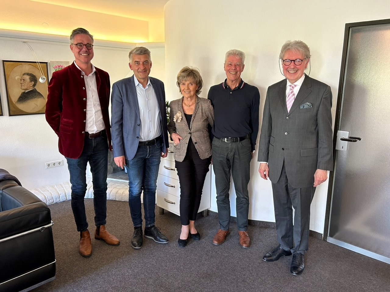 Herr te Neues ist ein Ur-Krefelder - die Ahnentafel der Familie reicht bis ins Jahr 1375 (!) - zurück. An einem Ostersamstag geboren, hat er wohnungstechnisch das Cracauer Viertel nie so richtig verlassen: Hohenzollernstr., Bismarckstr., wieder Hohenzollernstr. und schließlich Schuberstr. heißen seine Wohnstationen. Den 2. Weltkrieg übersteht er körperlich unbeschadet, verliert aber seinen Vater in den letzten Kriegstagen. Die Adresse legt es nahe, das Gymnasium am Moltkeplatz zu besuchen, wo er im Jahre 1959 sein Abitur ablegt. Er ist ein begeisterter und vielseitiger Sportler: Hockey, Tennis und schließlich - bis heute (!) - Rudern sind seine bevorzugten Terrains. Nach Ablegen seines 12-monatigen Wehrdienstes studiert er BWL an den Universitäten LMU München, FU Berlin und Köln, wo er seinen Dipl.-Kaufmann im Jahr 1964 mit einer Arbeit „Die Betriebsabrechnung im Papiergroßhandel“ macht. Nach einem Praktikantenjahr tritt er als 27-jähriger in die Familien-Firma „J. Finck & Co“ (das Papier- und Folienwerk am Grünen Dyk) als Geschäftsführer ein, ein Amt, das er bis zum Jahr 2016 (!) ausübt. Seit 55 Jahren ist er glücklich mit seiner Frau Katrin verheiratet. Die Verbindung zum Moltke reißt nicht ab. Sohn Elmar macht im Jahre 1990 dort sein Abitur, wird ebenfalls Dipl.-Kaufmann und ist heute Geschäftsführer und Gesellschafter der Firma sowie seit 2017 Präsident der Industrie- und Handelskammer Mittlerer Niederrhein, Krefeld, Mönchengladbach und Neuss. Dessen Kinder, Carlotta und Tassilo, machen 2019 und 2021 am Moltke ebenfalls ihr Abitur und studieren Jura und ... BWL. Herr te Neues engagiert sich überdies in der Krefelder Mennonitengemeinde, besonders aber - in "unserem" Zusammenhang - ist seine nicht hoch genug anzurechnende Tätigkeit als Vorsitzender des Vereins der Freunde und Förderer des Gymnasiums am Moltkeplatz in den Jahren 2005 - 2021 zu nennen. Vielleicht ist es ja, neben seinen sportlichen Aktivitäten: Schwimmen, Fahrrad- und Skifahren, die "rheinische Frohnatur", die er sich selbst attestiert hat, die ihn so jung erhält und ihn als stets bereiten aufgeschlossenen Gesprächspartner erscheinen lässt. Die Moltke-Familie wünscht „ad multos annos“, lieber Herr te Neues.