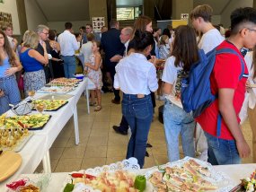 Nach dieser gelungenen Veranstaltung in der Aula wurden alle Gäste zu einem großen Buffet mit Schnittchen, Getränken und vielem mehr eingeladen.
