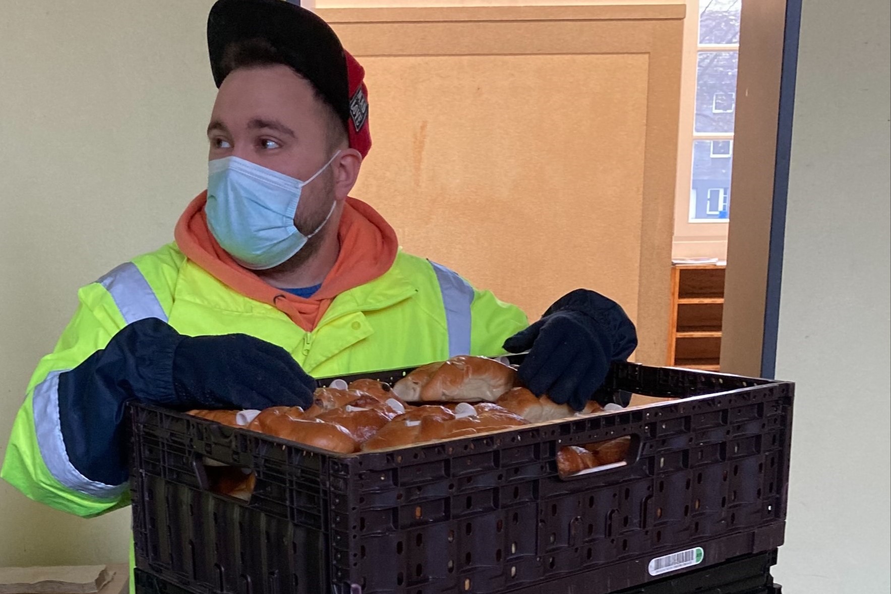 „Anlässlich des Martinstages haben wir, die Schülerinnen und Schüler der Q2, entschlossen, nicht nur unseren Mitschülern Weckmänner anzubieten, sondern auch eine große Bestellung an die „Krefelder Tafel“ zu spenden. Die Tafel schätzte die Spende, die Hilfsbedürftigen in Stahldorf eine große Freude bereiten sollte, sehr.