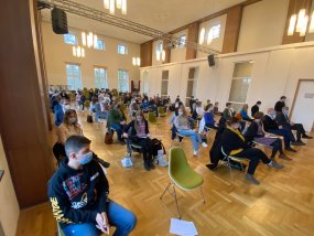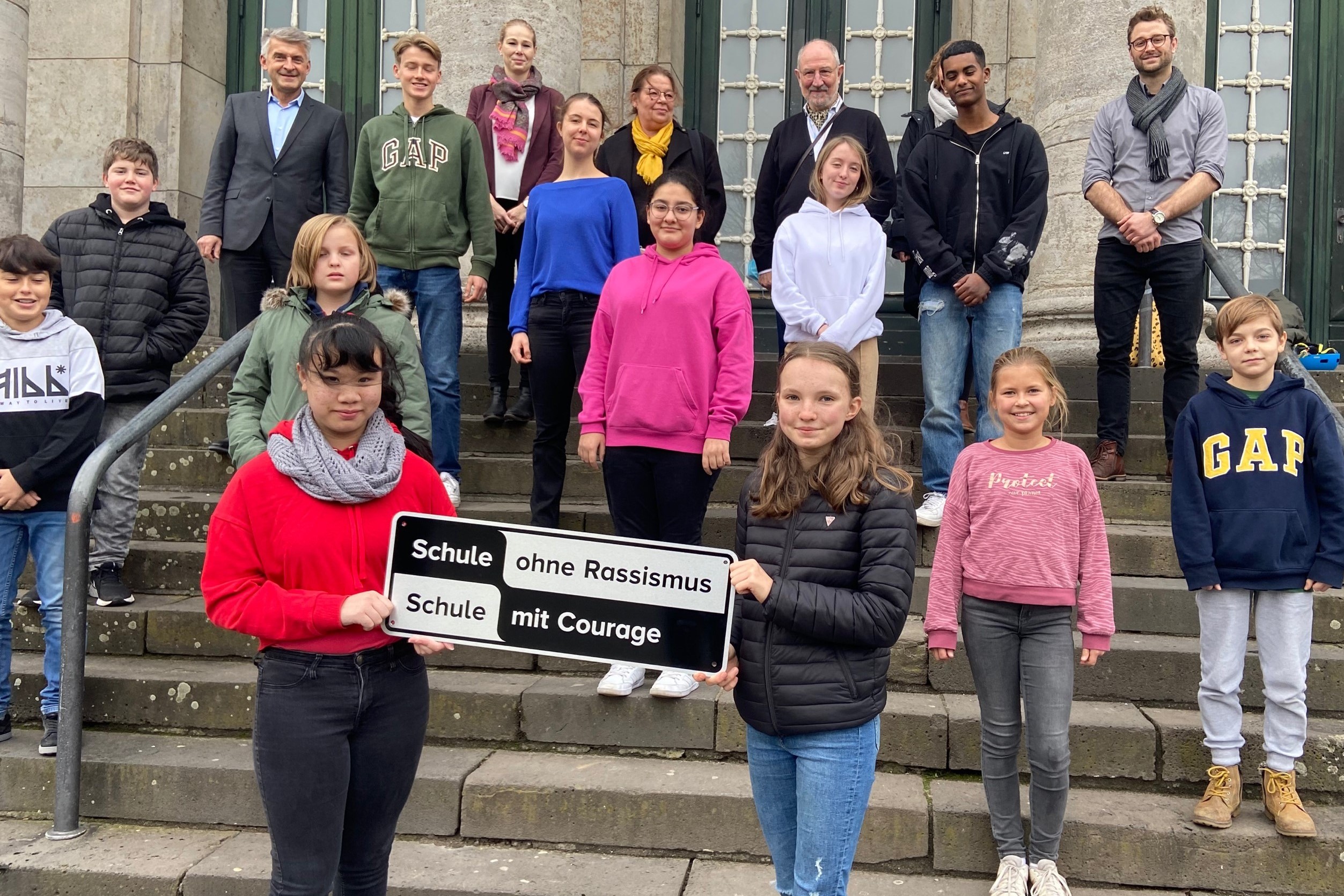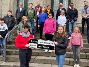 Das Gymnasium am Moltkeplatz ist nun eine Schule ohne Rassismus, eine Schule mit Courage. Die feierliche Aufnahmefeier in dieses Projekt fand am 9. Dezember 2021 um 12:30 Uhr in der Aula statt.