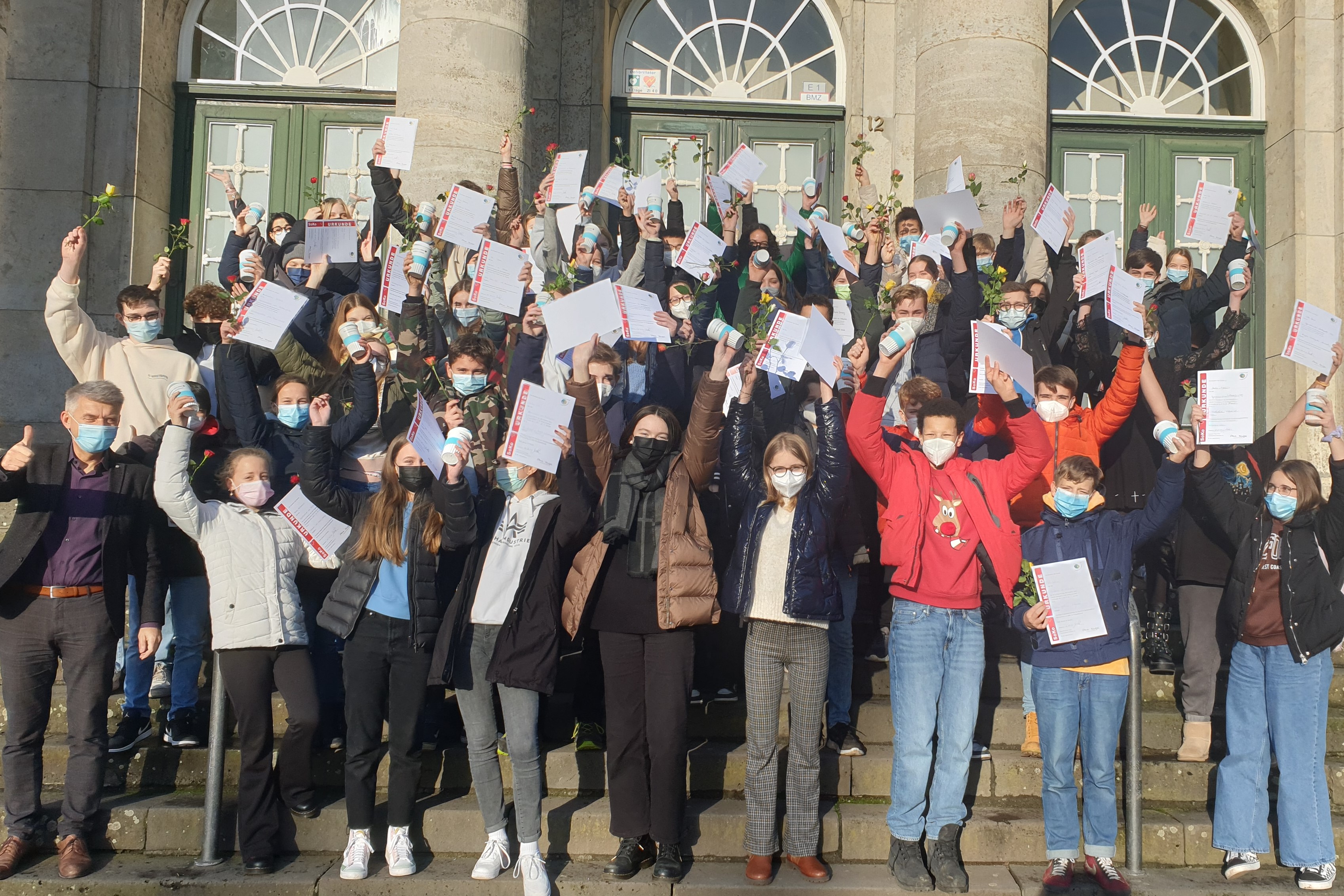 In seiner Rede dankte Herr Dr. Zöllner den Schülerinnen und Schülern für ihr Engagement und betonte dabei, wie gut das Projekt des Deutschen Jugendrotkreuz, das junge Menschen an soziales Engagement und die Übernahme von Verantwortung heranführen soll, zum Motto unserer Schule „Gemeinsam. Mehr erreichen“ passt. Insbesondere lobte er aber die Bereitschaft, sich in Zeiten von Corona unter teils schwierigsten Bedingungen mindestens 40 Stunden sozial zu engagieren. Dies sei keinesfalls selbstverständlich und nötige ihm den größten Respekt ab. Auch Frau Lorenz, die noch kleine Präsente des Jugendrotkreuz mitgebracht hatte, zeigte sich tief beeindruckt vom sozialen Engagement unserer Schülerinnen und Schülern und stellte dabei die Vielfältigkeit der sozialen Einsätze heraus. Darüber hinaus ermunterte sie dazu, sich weiterhin für andere Menschen einzusetzen. Dies sei schließlich der „Grundstein einer funktionierenden Gesellschaft“ und die „Basis für Demokratie“.
