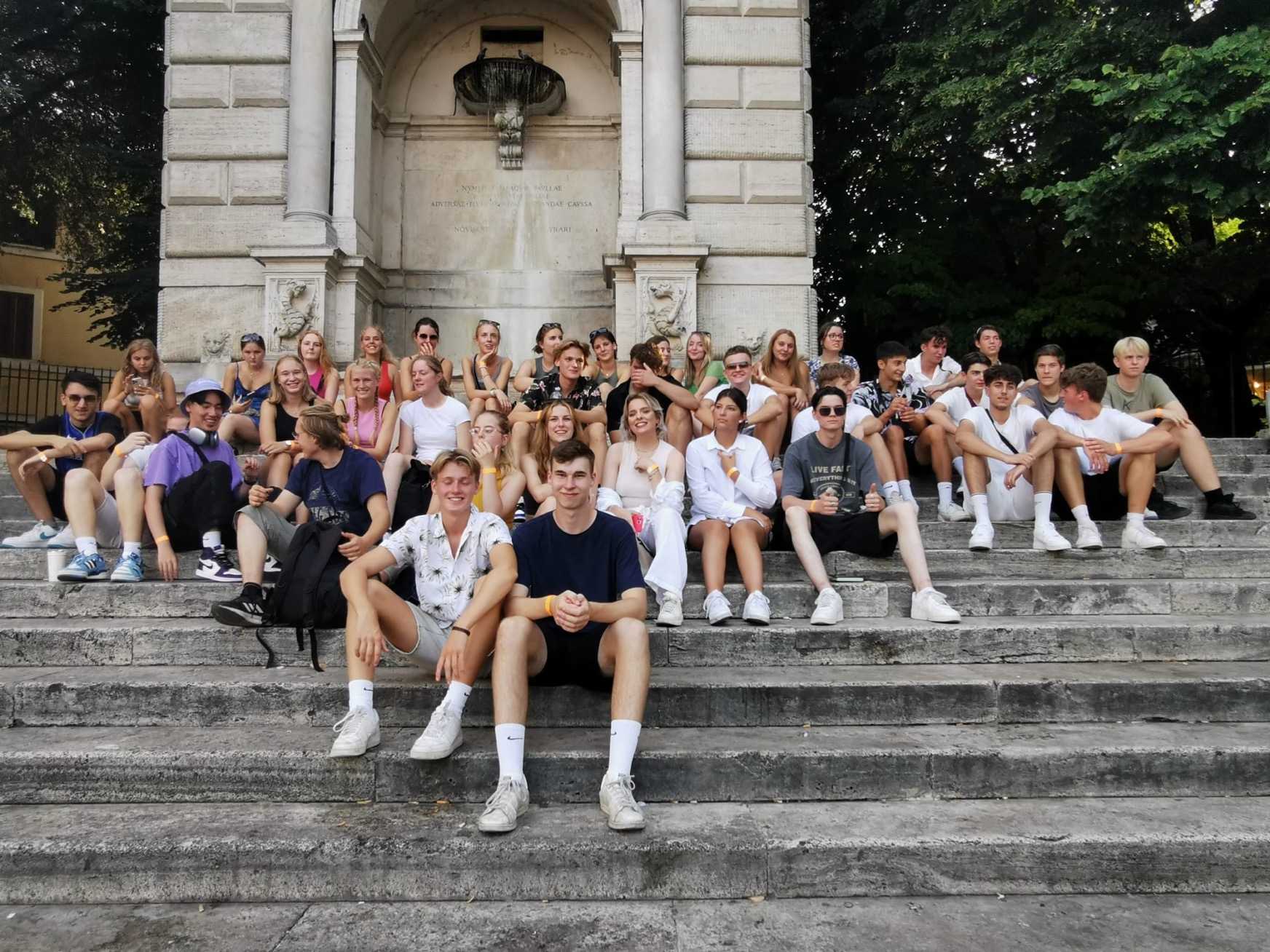 Abends trafen wir uns am „Piazza Trilussa“, der über eine der vielen Brücken über den großen Fluss Tiber zu erreichen ist. Nach einem Gruppenfoto an der Treppe ging es durch die vielen kleinen schmalen Gassen der Stadt. Die Lehrer bezeichneten das Viertel „Trastevere“ als das ultimative „Ausgehviertel“ in Rom. Restaurants und unzählige Bars reihten sich aneinander.