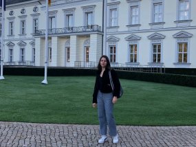 Am ersten Tag trafen sich alle Teilnehmenden nach erfolgreicher Sicherheitskontrolle und Vorlage des negativen Corona-Test-Ergebnisses am Schloss Bellevue. In Kleingruppen wurden Schlossführungen durchgeführt, und man hatte Zeit, einander kennenzulernen. Darauf folgten ein gemeinsames Mittagessen und eine offizielle Begrüßung durch die Veranstaltenden. In den anschließenden Gruppenarbeitsphasen wurden Themen und Fragen geformt. Ich gehörte der Gruppe „Bildung – politisch, digital, zukunftsfest“ an. Wir hatten unser Thema in vier Fragen unterteilt, die sich mit digitaler, individueller, finanzieller und sozial gerechter Bildung beschäftigten. Unser Endprodukt sollte ein Film werden, in dem wir Forderungen passend zu unserem Thema vorstellten. Nach vier Stunden intensiver Arbeit, die Diskussionen, Lösungsfindungen und Videodrehs umfassten, ließ man den Abend bei einem gemeinsamen Abendessen und anschließendem Freizeitprogramm in Berlin ausklingen.