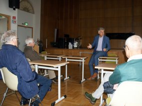 Die vormalige Klasse 13a des Abiturjahrganges 1972 des Gymnasiums am Moltkeplatz traf sich zu einem Rundgang durch das Schulgebäude unter fachkundiger Führung von Schulleiter Thomas Zöllner. Dabei stellten die anwesenden Herren fest, dass sich seit ihrer Schulzeit vieles verändert hat – nicht nur die Räumlichkeiten, sondern auch in Bezug auf die Lehrpläne.