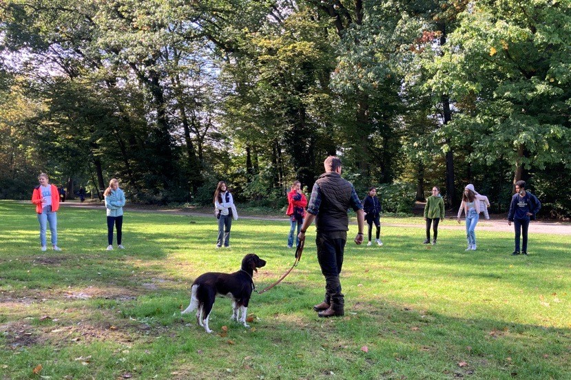 Auf diese und weitere Fragen fanden wir, die Klasse 8A, bei einer Waldexkursion am 07.10.2021 gemeinsam mit Frau Jochims und dem Praktikanten Herrn Demirkiran heraus. Vor dem Stadtwaldhaus trafen wir auf den Oberförster Jens Poschmann, der erläuterte, dass die ausgedehnte Grünfläche „Wald“ genannt wird, da sie ein besonders großes Gebiet umfasst, weshalb Hunde auch nicht angeleint werden müssen. Zusammen mit Vierbeiner und Kegel führte er uns einmal quer durch den Wald, wo wir unterschiedlichste Dinge über den Lebensraum und seine Bewohner erfuhren. Passend zu diesem Ausflug war nach einer langen Regenperiode ausnahmsweise sonniges Wetter, wodurch die Stimmung noch weiter gehoben wurde. Angefangen bei der Baumart Buche ging es weiter zu einem Feld von jungen Douglasien aus dem fernen Amerika, die einen Duft nach Zitrusfrucht verströmen. Am Ende bildeten wir alle einen großen Kreis, um eine genauere Vorstellung des Durchmessers des breitesten Baumes der Welt zu erhalten. Dieser beträgt 18 Meter.