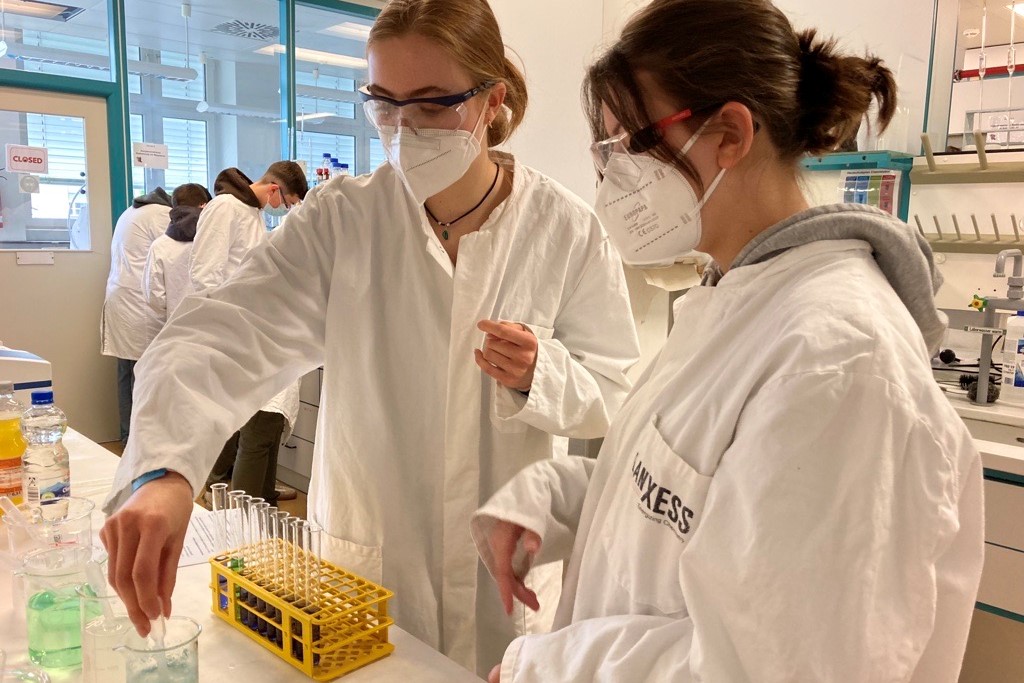 Am Dienstag, den 31. Mai 2022, nahm die Klasse 9a gemeinsam mit ihrer Chemie-Lehrerin Frau Jochims am Lanxess-Labortag in der TH Köln im Chempark in Leverkusen teil. Die Klasse wurde von einem Bus, der von Lanxess zur Verfügung gestellt wurde, zum Schülerlabor gebracht.