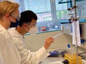 Dort wurden zum Beispiel Experimente zu Säuren und Basen, welche zuvor im Unterricht behandelt worden waren, vorbereitet und von den Schülern durchgeführt. So wurde zum Beispiel der ph-Wert verschiedener Säuren und Laugen mithilfe von Rotkohlsaft als Indikator bestimmt. Später wurde bei einem Titrationsverfahren die Konzentration einer Natronlauge herausgefunden, indem man eine Säure als Maßlösung dosiert hinzugab.