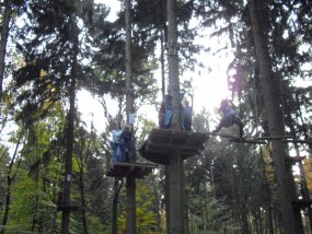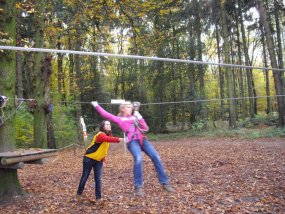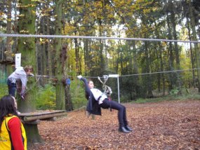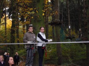 Am 28. Oktober fuhr die Klasse 6b nach der Schule mit einem bestellten Bus in den Kletterwald Süchteln. Nach einer halben Stunde Fahrt mussten die Schüler noch 20 Minuten durch den Wald gehen, bis sie bei dem Kletterwald ankamen. Nach einer Einleitung ging es endlich los! Die Schüler mussten erst einen kleinen Einsteigerparcours vorklettern und durften dann zwischen Fitnessparcours 2 und 3 wählen. Danach konnten sie Abenteuer 1 oder 2 klettern. Einige haben sich auch an den Risikoparcours gewagt. Nach 3 Stunden Klettern ging es dann wieder nach Hause.