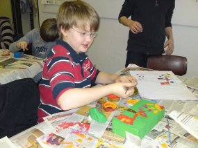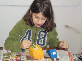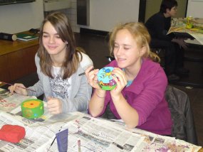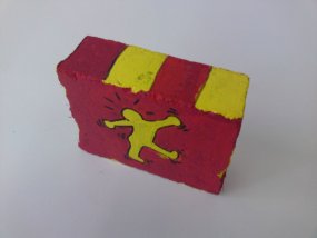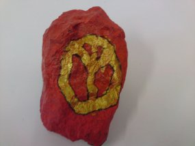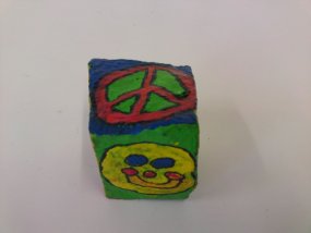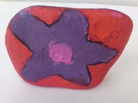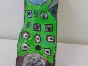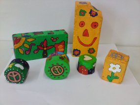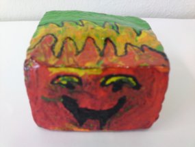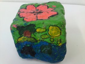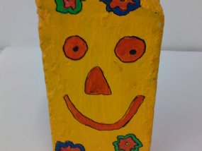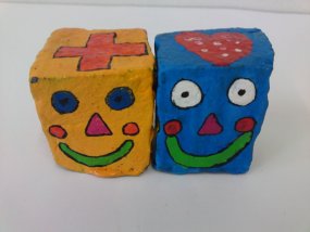 Die Schülerinnen und Schüler der Klasse 6b bemalten im Kunstunterricht, inspiriert von Motiven des amerikanischen  Künstlers James Rizzi, Pflastersteine.