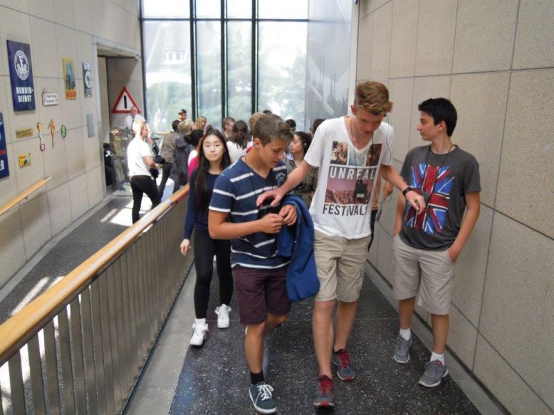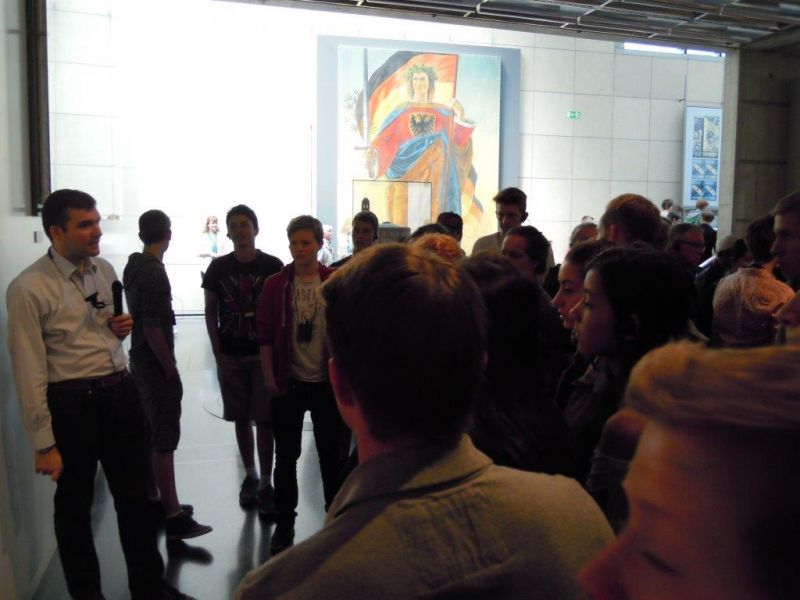 Am Mittwoch, dem 18.6.2014, war es mal wieder so weit. Die mittlerweile zum Schulprogramm gehörende Exkursion der 9. Klassen zum Haus der Geschichte in Bonn fand statt, und so machten sich um 8.30 Uhr 87 Neuntklässler auf den Weg, um in einer 1 ½-stündigen Führung in die Grundlagen der bundesrepublikanischen Geschichte eingeführt zu werden. Ihrem sehr angenehmen Verhalten vor Ort galt das Lob der begleitenden Lehrer, Herr Wilm, Herr Pelzer sowie Herr van Randenborgh, den guten Vorkenntnissen das der sie durch die Ausstellung führenden Museumsmitarbeiter. Obwohl das Museum vor Besuchern schier zu bersten schien, konnten sich die vier Gruppen vor Ort gut bewegen und erhielten vor allem eine an der Praxis mit den Hunderten von Original-Exponaten orientierte Führung. Immer wieder kam es zu überraschten Einblicken in unsere jüngste Geschichte, so etwa, wenn die Jungs ein Goggomobil bestaunten, während die Mädchen erstaunt waren, dass sich aus einem ausrangierten Stahlhelm sehr wohl eine Salatschüssel herstellen ließ. Alles in allem genossen unsere SchülerInnen die immer wieder sehenswerte und mit neuen Ausstellungsstücken bestückte Geschichtsmeile und zeigten sich sichtlich beeindruckt über den nun wirklich geschichtsträchtigen Werdegang unserer “jungen“ 66-jährigen Demokratie. Gegen 14.30 Uhr erreichte der Tross schließlich wieder wohlbehalten Krefelder Boden. Ein großer Dank geht an Frau Schumacher-Hirt für ihre Organisation mit gleichzeitig besten Genesungswünschen. Auf ein Neues dann in 2015!