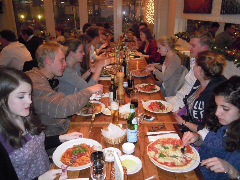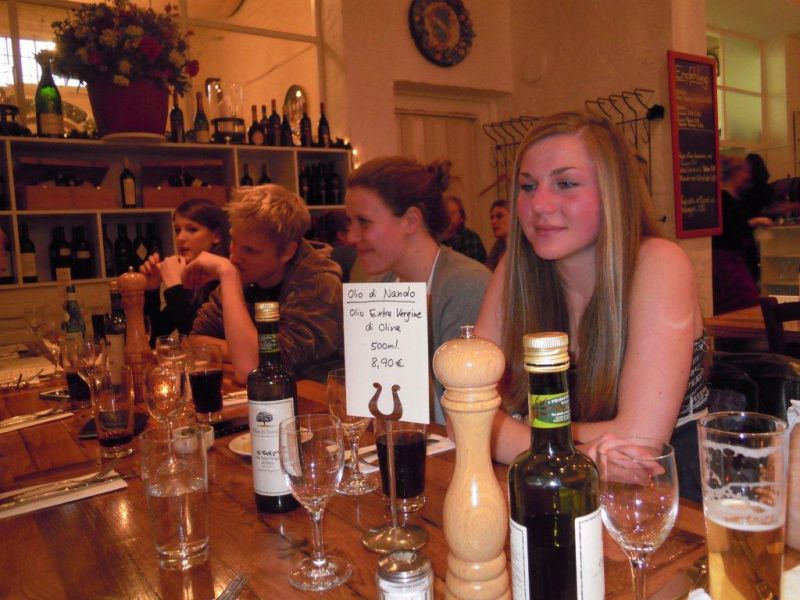 Frohgelaunt u n d bester Stimmung trafen sich die 17 Mitglieder des Deutsch-LK 1 gemeinsam mit ihrem Kurslehrer, Herrn van Randenborgh, am Dienstagabend, dem 27.3.2012, zum Abschiedsessen beim "Italiener" auf dem Großmarkt. Dabei wurde die gut gefüllte Kurskasse, über deren Zustandekommen sich der Mantel des Schweigens ausbreitet, in die Getränke investiert, während jeder sich „sein“ Gericht auswählte, was allen ausgezeichnet mundete. Der Lehrer erhielt zu seiner Überraschung ein selbst gebasteltes Memory über den Kurs, was er mit einigen Hilfen – gerade so wie im Unterricht, nur mit umgekehrten Vorzeichen – meisterte. Kaum hatte das Essen begonnen, wurden schon die ersten schulischen Anekdoten aus den immerhin noch neun Moltke-Jahren hervorgezogen und teils zur allgemeinen Erheiterung zum Besten gegeben. Nicht immer, aber doch meistens, funktionierten dabei die Ohren des anwesenden Lehrers. Zu seiner großen Freude hatten die SchülerInnen jedenfalls ihr morgendliches Motto „think pink“, das denn doch auf Dauer den Augen zum Schmerz geraten wäre, gegen eine dem Anlass angemessene Abendgarderobe ausgewechselt. Gegen 22.30 Uhr, also zu einer gesitteten Zeit, löste sich der Kreis mit einem leicht wehmütigen Rückblick auf die vergangenen zwei Jahre auf, denn am nächsten Tag stand ja schon das Motto „Piraten“ an und entern lassen wollte sich der Kurslehrer nun doch nicht. Allen Abiturienten dieses Jahrgangs wünschen wir auf diesem Weg ein gutes Bestehen ihres bevorstehenden Abiturs.