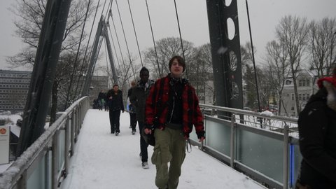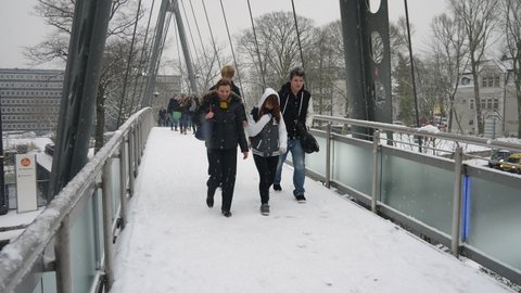 Durch ein Meer von Schneeflocken kämpften sich die Kunstkurse G1 / G3 (EPH) am 10. Dezember 2012 durch Essen auf dem Weg zum "Folkwang Museum".