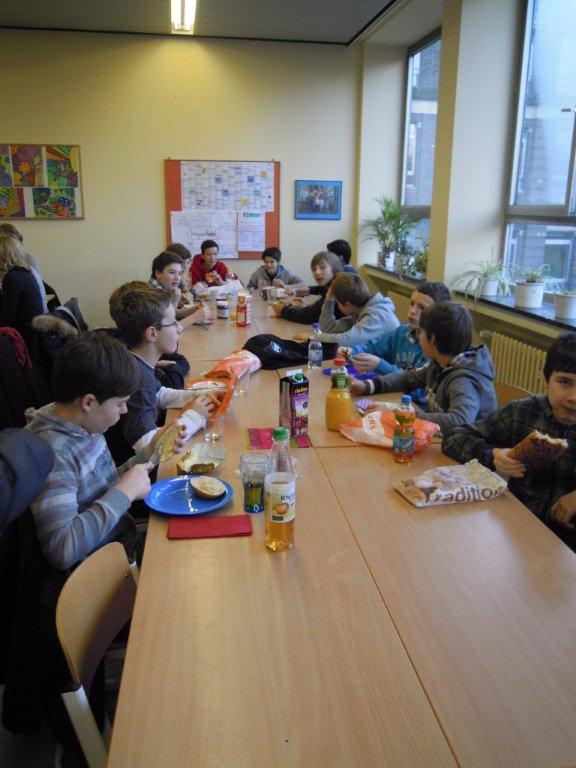 wünschen die Schüler und Schülerinnen der Klasse 7c sowie ihre Eltern allen Mitgliedern der Moltke-Familie. Am Samstag trafen Erstere sich zum obligatorischen Neujahrsfrühstück und „klönten“ in „ihrem“ Klassenraum ca. 1 ½ Stunden über Gott und die Welt. An vorderster Stelle der Wünsche für 2013 standen Gesundheit und das Erreichen des Klassenziels. Ansonsten war die Stimmung ausgelassen-heiter, kein Wunder, hatte sich doch auch die in den letzten Wochen nur selten gesehene Sonne wieder einmal blicken lassen, und so bot der sonnig-helle Raum 124 ein angenehmes Ambiente für die ca. 60 Gäste.