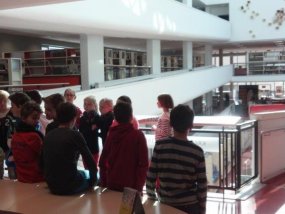 Die Schülerinnen und Schüler der Klasse 6b besuchten am Montagvormittag, begleitet von ihrem Klassenlehrer, Herrn Arlt, und ihrer Geschichtslehrerin, Frau Rasch, sowie der Tutorin Nora, die Mediothek der Stadt Krefeld. Schon auf dem Hinweg herrschte bei strahlendem Sonnenschein gute Stimmung. In der Mediothek angekommen wurde die Klasse nach einem kurzen Einführungsvortrag in zwei Gruppen aufgeteilt. Je eine Gruppe erhielt eine informationsreiche Führung durch die Räumlichkeiten der Mediothek, während die andere Gruppe in der Kinder- und Jugendabteilung ein Quiz über die Mediothek und die unterschiedlichen dort zur Ausleihe verfügbaren Medien bearbeitete. Zum Schluss erhielt jede/r einen „Schnupper-Ausweis“ für die Mediothek, mit dem die Mitgliedschaft für drei Monate kostenlos ist. Am Mittag traf die Klasse wohlbehalten wieder am Schulgebäude ein.
