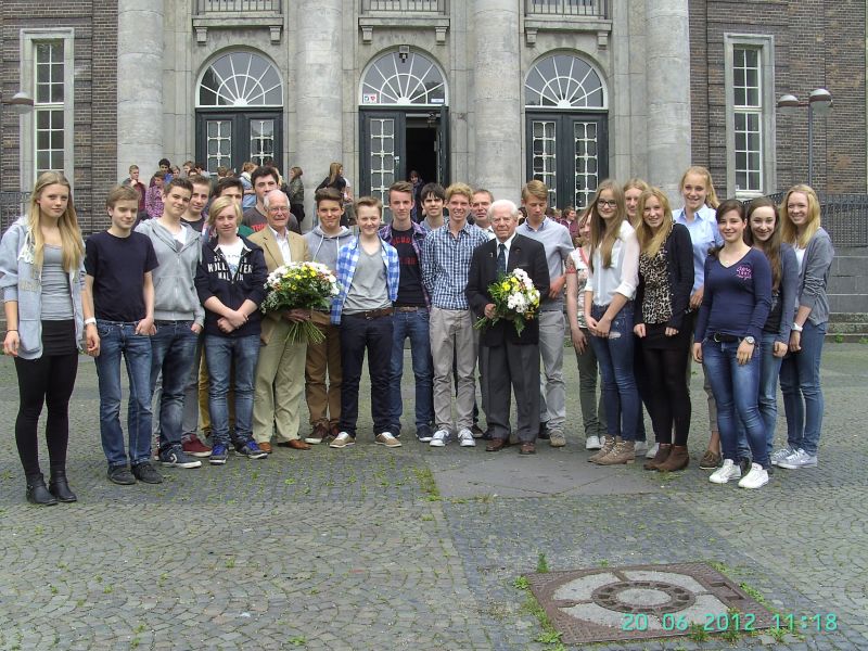 Herr Dr. Vogt, langjähriger Beigeordneter der Stadt Krefeld und Mitherausgeber der Krefelder Stadtgeschichte, hielt in einem Religionskurs der Stufe 9 einen Vortrag über den historischen Ablauf der Krefelder Bombennacht vom 22.06.1943. Danach berichtete Herr Hans Otto Floehr, damals wohnhaft am Dampfmühlenweg, wie er als zehnjähriger Junge diese Nacht erlebte und überlebte.