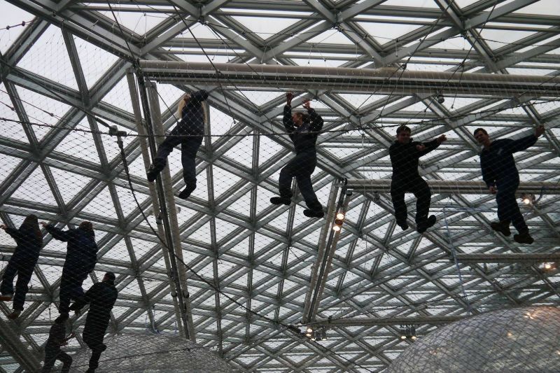 Arbeiten des Künstlers Christian Boltanski muss man „live“ erleben, denn ein Bild oder ein Film über die Arbeiten des Erinnerungskünstlers können das wirkliche Nachspüren nicht ersetzen. Bei der Exkursion ins K21 nach Düsseldorf konnten die Schülerinnen und Schüler Boltanskis Installation „El Caso“ (»Der Kriminalfall«) hautnah erleben und auf sich wirken lassen. Ein weiteres Erlebnis an diesem Tag war sicherlich auch die riesige Rauminstallation „in orbit“ des Künstlers Tomás Saraceno. Über der Piazza des K21 schwebt in mehr als 25 Meter Höhe eine Konstruktion aus Stahlnetzen, die in drei Ebenen unter der gewaltigen Glaskuppel aufgespannt ist. Diejenigen, die mutig genug waren dieses Spinnennetz zu betreten, konnten aus luftiger Höhe die Museumsbesucher in der Tiefe wie winzige Figuren beobachten.