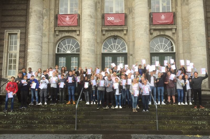 Am 19. November 2019 erhielten nun schon im zwölften Jahr in Folge die Schülerinnen und Schüler der Jahrgangsstufe 9 im Rahmen einer kleinen Feierstunde in der Aula von Herrn Dr. Rademacher und Herrn Möllecken, der als Pate das Projekt „Soko – Soziale Kompetenz in der Schule erwerben“ betreut, die offizielle Urkunde für ihre erfolgreiche Teilnahme. Damit konnten wieder einmal fast 90 Schülerinnen und Schüler des Gymnasiums am Moltkeplatz für die ehrenamtliche Arbeit, die sie auch im vergangenen Jahr in Kindertagesstätten, Familienzentren, Altentagesstätten, Behinderteneinrichtungen, Sportvereinen oder bei der Hausaufgaben-betreuung und Spieleausleihe an unserer Schule geleistet haben, ausgezeichnet werden.