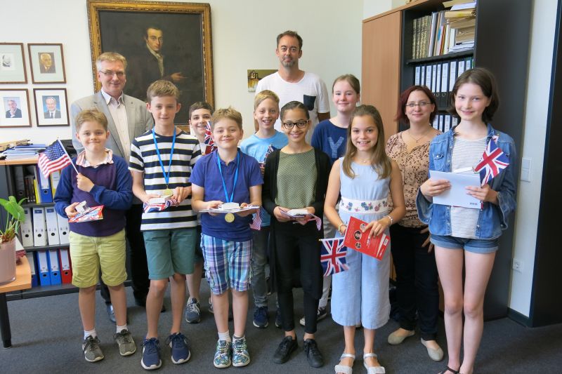 Je nach Abschneiden im Jahrgang, konnten viele SchülerInnen sich über Lektüren, Vokabelhefte, Comics, etc. für ihre guten Leistungen freuen. Im Schulleiterbüro wurden wie in jedem Jahr die Jahrgangsbesten geehrt, sie konnten sich zusätzlich noch über spezielle Zertifikate und weitere Ehrenpreise freuen. Besonders erwähnenswert sind in diesem Jahr die Ergebnisse von Aidan Thomsen (5c) als 62. im Land NRW sowie Jan Brinkmann (6b) als 115. im Landesvergleich.
