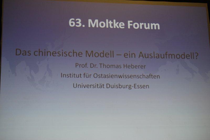 Gast des 63. MOLTKE-FORUMS am 14.7. war der Ethnologe und Politikwissenschaftler, Herr Prof. Heberer von der Universität Duisburg/Essen, dessen Thema „Das chinesische Modell – ein Auslaufmodell ?“ lautete.