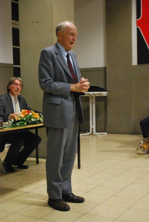 Lübbe, zweifelsohne ein Professor alter Schule, begeisterte zuvorderst durch seine Aura und die Verve, mit der er seine provokanten Thesen vortrug und die zu einer lebhaften Diskussion beitrugen. Die 100 Zuhörer dankten es ihm mit mehr als lebhaftem Beifall.