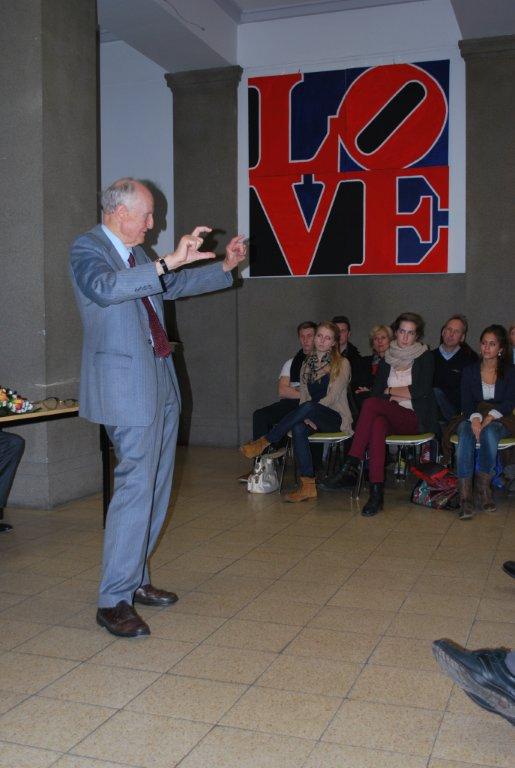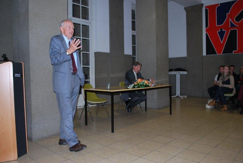 Am 17. November nun hielt der auch international renommierte Philosoph Hermann Lübbe den 65. Gast-Vortrag, der den Titel trug: "Gleichheit und Freiheit. Wieso die sogenannte Massengesellschaft Individualisierungsprozesse begünstigt." Ohne jedweden Medienhype, ja sogar ohne die Unterstützung des Redner-Pults hielt der betagte Philosoph eine knapp einstündige frei vorgetragene Vorlesung, in der er versuchte, den dem Untertitel inhärenten Widerspruch aufzulösen. Spätestens nach der Französischen Revolution hätten sich die Gesellschaften des Abendlandes durch Suspendierung ständischer Vorrechte ihre Freiheit erkämpft. Im Zuge dieser Mündigkeitsbestrebungen sei dann auch die Frage nach der Gleichheit der/des Menschen aufgetaucht. Die Vermittlung dieser beiden Ziele aber habe sich als äußerst schwierig erwiesen und gleiche noch heute der „Quadratur des Zirkels“. Zwar gebe es für viele Menschen in der durch die Freiheitsbestrebungen erwirkten Massengesellschaft ungleich bessere Voraussetzungen, ein gleiches Leben zu führen, es sei aber unbestreitbar, dass sich die berühmte Zwiebel des gesellschaftlichen Aufbaus nach oben hin nicht auflöse, sondern im Gegenteil zwar stark verjüngend, aber in ungeahnte Höhen treibe. Das liege nun einmal an den durch noch so viel Freiheit nicht leugbaren individuellen Voraussetzungen, die bei noch so ausgedehnter Förderung breiterer Schichten eben doch nicht alle zur gleichen Leistungsbefähigung kommen lasse. Lübbe verwies auf die Bereiche der Musik, des Theaters oder etwa der Malerei, bei denen niemand auf die Idee komme, aus allen Menschen – rein theoretisch – einen Picasso werden zu lassen. Im Sport, so Lübbe, bezweifle niemand die unterschiedlichen Fertigkeiten zwischen z.B. Fußballern, die auch durch noch so intensives Training nicht angeglichen werden könnten. Zudem würden diese ungleichen Befähigungen auch noch nolens volens überproportional alimentiert.