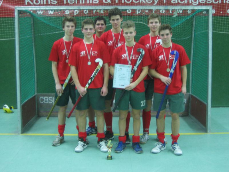 Die Hockey-Jungenmannschaft II unserer Schule hatte sich für die Westdeutsche in Köln qualifiziert und brach am 15.2. um 8.00 Uhr dorthin auf, leider mit Handicap: Lennart Eschler hatte sich verletzt und die zerstörte Brücke auf der A 57 sorgte für eine verspätete Ankunft. Herr Knur hatte Glück beim Auslosen und so gewann die Mannschaft, begleitet von Robin Rösch (Nationaltrainer und sportlicher Leiter beim CHTC), Lars Conzendorf und Lauritz Schmidt, leicht gegen den Nordvertreter aus Datteln. Danach ergab sich eine längere Pause wegen des zweiten Halbfinals und der Mädchenspiele, so dass sich das Team energetisch intensiv beim fußläufig erreichbaren "Mäkkes" vorbereiten konnte. Im Endspiel standen uns die favorisierten Kölner Apostel gegenüber. Das Moltke-Team überraschte und lag kurz vor Schluss 4:3 in Führung, als die Schiris die achte Ecke gegen uns pfiffen. Köln konnte glücklich ausgleichen und gewann am Ende in der Verlängerung. Die Stimmung war nur für kurze Zeit mies und hellte sich auf der Rückfahrt im Bus durch allerlei Scherze wieder auf ("Bitte wenden"). Herzlichen Glückwunsch zur Vizemeisterschaft!