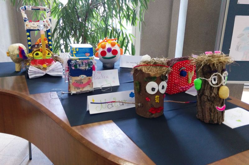 Die Fotos zeigen die Herstellung und auch die ansprechenden und originellen Ergebnisse, die mit der Zeit entstanden sind und nun in unserem Foyer ausgestellt werden.