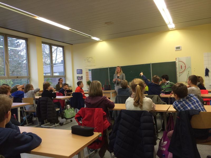 „Warum gibt es das Recht auf Schutz im Krieg, wenn es sowieso nicht eingehalten wird?“ Über diese und viele andere interessante Fragen diskutierte zum „Aktionstag Kinderrechte“ die Krefelder Bundestagsabgeordnete Kerstin Radomski mit Schülerinnen und Schülern des Gymnasiums am Moltkeplatz. Neben Fragen nach dem Alltag einer Bundestagsabgeordneten im fernen Berlin gerieten die Sechstklässler schnell in eine angeregte Diskussion darüber, wie in der Politik Geld eingesetzt werden sollte, wenn es darum geht, Rechte von Kindern zu stärken. Das abschließende Angebot der Abgeordneten an die Moltkeschüler, ihr einen Brief mit Fragen und Anregungen nach Berlin zu schicken, wurde mit Begeisterung aufgenommen.