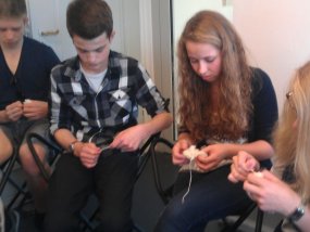 Des Weiteren besichtigte die Klasse das prachtvolle Herrenhaus des durch den Handel mit Textilien zu Wohlstand gekommenen Unternehmers Brügelmann. Am Ende der Führung hatten die Schüler/innen selbst die Möglichkeit, das Spinnen auszuprobieren.