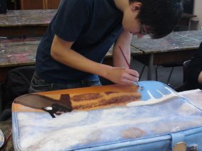 Unsere Schüler/innen des Kunstkurses Stufe 11 haben nun Landschaftsbilder bekannter Maler zum Anlass genommen, Koffer, Rucksäcke oder Taschen zu gestalten.