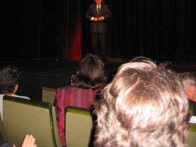 Die Photoserie zeigt den Leistungskurs Deutsch, Stufe 12, (Kurslehrer Herr van Randenborgh) beim Besuch des Düsseldorfer Schauspielhauses am Freitagabend, dem 7.11.2003, wo der "Literaturpapst" Marcel Reich-Ranicki eine einstündige Lesung bezüglich des von ihm neu herausgegebenen Kanons `Deutschsprachige Erzählungen` hielt; Themen seiner Ausführungen waren u.a. seine Beziehung zur Literatur und zum Schauspiel, seine Arbeit als Literaturkritiker und die Frage nach einem Kanon, und zwar als solchem im Allgemeinen wie dem nun von ihm edierten im Besonderen.