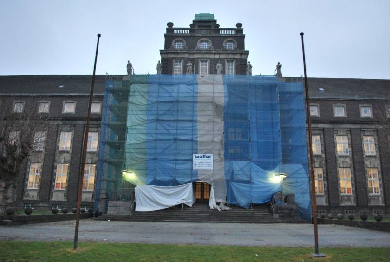 Einen ungewohnten Anblick bietet unser Portal zur Zeit. Schäden am Portikus machten eine Reparatur nötig, zudem werden die Säulen sandstrahlgereinigt. Schon bald wird unsere Front wieder im neuen alten Glanz erstrahlen. Wenn das kein gutes Omen ist ...