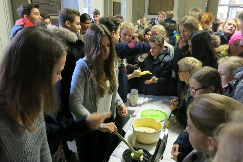 Das Gymnasium am Moltkeplatz unterstützt die Wohnungslosen-Hilfe der Diakonie Krefeld/Viersen. Angeregt von den Religionslehrern haben Schüler der Jahrgangsstufe 10 Weihnachtsgeschenke für Wohnungslose gepackt. Eine Waffelbackaktion im Foyer der Schule erbrachte stolze 175 Euro.