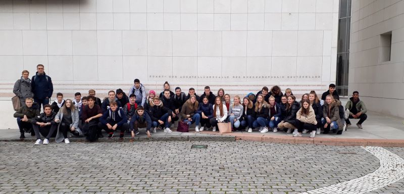 Schon früh am Morgen des 30. Oktobers trafen sich die Lateinkurse der Stufe 9, Q1 und Q2, um zusammen mit den begleitenden Lehrern, Herrn Dr. Ginzel und Frau Dr. Verwiebe, die Busfahrt nach Bonn anzutreten. Nach einer halben Stunde in der Kälte war dann auch der Bus einsatzbereit und es konnte losgehen. Eineinhalb Stunden später kamen wir in der Bundeskunsthalle an und konnten, in zwei Kleingruppen aufgeteilt, die dortige Ausstellung “Von Mossul nach Palmyra” besichtigen (www.bundeskunsthalle.de). Die Ausstellung vom 30. August bis zum 3. November 2019 lädt Besucher auf eine digitale Reise ein, beginnend im antiken Ninive (heute Mossul) über Städte wie Aleppo oder Leptis Magna und endet schließlich in Palmyra. Heutzutage sind große Teile der Städte durch Krieg oder religiöse Auseinandersetzungen zerstört worden. Unter Ausschöpfung aller technologischen Mittel wurden diese digital wieder zum Leben erweckt: Riesige Leinwände zeigen 3-dimensionale Kirchen von innen, Stadtpläne können auf kreisrunden Bildschirmen besichtigt werden und sogar eine Virtual Reality Replikation der Städte gibt es zu erkunden. Ziel der Ausstellung ist es, die Bedeutung des Bewahrens der antiken orientalischen Kultur zu verdeutlichen. Die bildhafte Darstellung und die Möglichkeit, sich näher mit dem Gesehenen zu beschäftigen, machten das Museum sehr eindrücklich und sorgten dafür, dass es sicherlich allen Besuchern in Erinnerung bleiben wird. Im Anschluss an den Museumsbeuch durften sowohl Schüler als auch Lehrer die Stadt Bonn noch ein wenig erkunden, bevor es dann wieder zurück nach Krefeld ging.