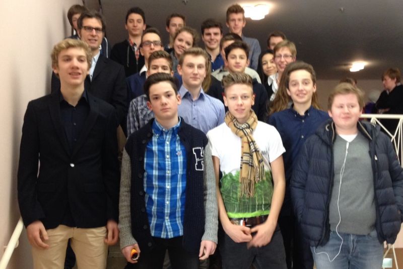 Zur Krönung einer gelungenen Unterrichtssequenz zum Thema „Leben, Lieben, Lästern: Catull, Ovid, Martial“ trafen sich am 18.02.2015 die Grundkurse Latein unter der Leitung der Doctores Verwiebe und Ginzel im Theater der Stadt Krefeld, um gemeinsam einer umjubelten Aufführung der Carmina Burana („Beurer Lieder“) Carl Orffs beizuwohnen. Im ausverkauften Haus am Theaterplatz wusste schon die Mise en Scène von Orchester, Chor und Ballett die Schüler vom Moltkeplatz in den Bann zu ziehen: Rhythmus, Melodie und die Stimmgewalt des Chores sowie der Solisten (Sopran: Sophie Witte, Bariton: Rafael Bruck, und Countertenor: Frank Valentin) hinterließen sichtlich begeisterte Schüler. Bereits im Vorfeld hatten sich die Schüler im Rahmen eines Workshops im Unterricht mit den 1937 in Frankfurt am Main uraufgeführten Carmina beschäftigt. Hierzu hatten die Schülerinnen und Schüler die Theaterpädagogin Silvia Behnke in unsere Schule eingeladen, die gemeinsam mit einer Kollegin Text und Tanz erfahrbar machte. Einmal mehr konnte so den Schülern die direkte Verknüpfung von Wort und Bewegung in der anregenden Atmosphäre eines modernen Lateinunterrichts vor Augen geführt werden. Das Foto zeigt sichtlich beeindruckte discipuli.
