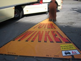 Am 19. und 20. September 2006 haben die 6. Klassen unserer Schule an dem Projekt "Toter Winkel" der Verkehrswacht in Zusammenarbeit mit der Polizei, dem Schulamt Krefeld und Krefelder Speditionen teilgenommen. Die Schülerinnen und Schüler waren von Kollegen unter Verwendung von Material der Medienstelle gut auf die Aktion vorbereitet worden.