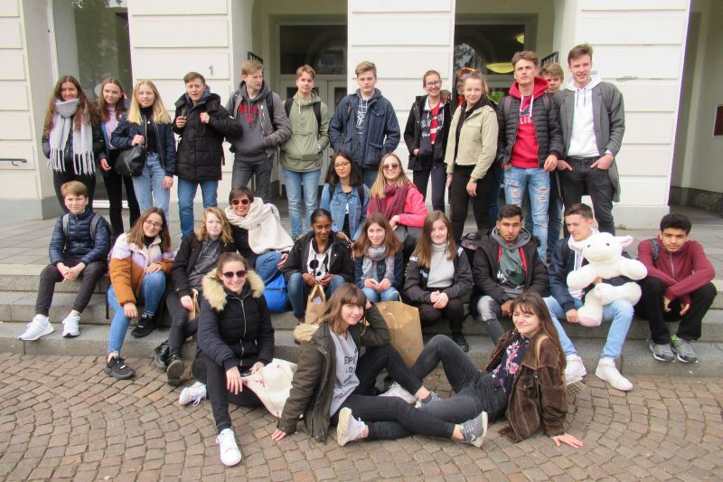 Als wir uns am Freitagnachmittag (03.05.2019) am Zooparkplatz mit Herrn Strautmann und Frau Dederichs trafen, freuten sich alle auf die Ankunft unserer Austauschschüler, welche wir im März schon in der Normandie besuchten hatten. Als sie dann ankamen, waren wir schon alle gespannt auf die vor uns liegende Woche. Das Wochenende haben wir alle in unseren Familien verbracht. Einige unternahmen schon Ausflüge nach Düsseldorf oder Venlo. An den Abenden haben wir jedoch oft etwas mit allen Austauschschülern zusammen gemacht, was sich unter der Woche auch nicht geändert hat. Nach einem Empfang in der Schule durch Herrn Dr. Rademacher – am Montagmorgen auf Französisch!, wurden die französischen Schüler ganz offiziell herzlich im Rathaus der Stadt Krefeld willkommen geheißen. Am folgenden Dienstag fuhren wir alle zusammen nach Köln, wo wir uns den Dom, die Stadt und auch die WDR-Studios anschauen konnten. Am nächsten Tag gingen wir alle mit unseren Austauschpartnern in die Schule. Dort durften unsere französischen Gäste uns in den jeweiligen Fachunterricht begleiten, welcher für unsere französischen Freunde komplett anders war als der in ihrer Heimat. Zudem setzten wir unsere Arbeit an unserer Gruppenarbeit fort, welche wir in Gaillon schon angefangen hatten. Bei dieser haben wir uns Black-Stories ausgedacht, welche dann auf Deutsch und Französisch übersetzt und geschrieben werden mussten. Nach diesem Schultag waren wir alle noch zusammen beim Bowlen. An unserem letzen Tag am Donnerstag bereisten die Franzosen Aachen. Dort schauten sie sich neben der Stadt den Dom an, welcher sehr eindrucksvoll war, wie einige erzählten. Am Abend trafen wir uns dann alle ein letztes Mal und ließen den Tag lustig ausklingen, bevor am Freitagmorgen die Heimreise für unsere Gäste bevorstand. Neben ein paar Tränen mussten wir uns dann alle von unseren Freunden aus der Normandie verabschieden! Für die Organisation und die schönen zwei Wochen danken wir Frau Dederichs und vor allem Herrn Strautmann sehr, für den dieser Austausch etwas Besonderes war: Nach stolzen 20 Jahren hört er auf!!!