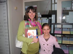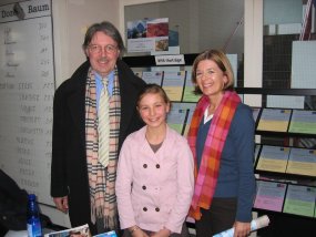 Die Bilder zeigen Aylin, ihre Mutter sowie die sie begleitenden Lehrer, Frau van Blanken-Möckel (Deutschlehrerin der 6a) und Herrn van Randenborgh.
