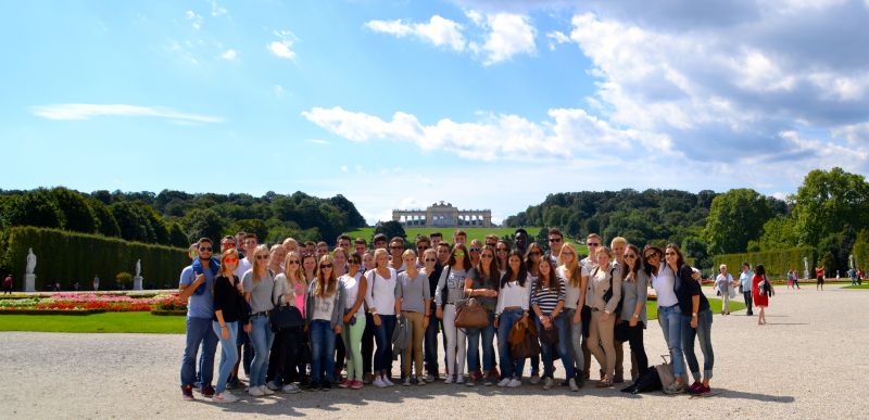 Am Sonntag, den 24.8., trafen morgens früh 43 Schüler und 4 begleitende Lehrer unserer Schule im Düsseldorfer Flughafen ein, der Treffpunkt war der Check-In-Schalter von Air Berlin. Das Ziel des Fluges war Wien! Nach dem relativ kurzen Flug und der anschließenden Bahnfahrt im „Meininger Hotel Wien Downtown Franz“ angekommen, ging es erstmal ans Einchecken. Nachdem alle Zimmer verteilt waren, legten wir auch schon mit einer einführenden Stadtrundführung los. Da die 47-köpfige Krefelder Invasion zu groß für einen Tour Guide war, wurde die Gruppe auf zwei Stadtführer aufgeteilt. Die zwei unterschiedlichen Führungen waren allerdings auch von unterschiedlicher Qualität: Eine Führung beinhaltete alle nennenswerten Sehenswürdigkeiten rund um die Innenstadt Wiens und bot danach eine gute Grundlage für das Erkunden auf eigene Faust, während die andere Führung sich eher auf theoretische Wissensvermittlung beschränkte und so wirkte, als wäre das Ziel der Vorträge nicht die Begeisterung unserer Schülertruppe, sondern eher die Eigenbegeisterung gewesen. Dennoch haben sich anschließend alle einigermaßen gut in Wien zurecht gefunden – Mission erfüllt! Der nächste Tag begann, nach einem kleinen Frühstück, mit einer Tour durch das Schloss Schönbrunn und wurde einem Gang durch den schönen Schlossgarten fortgesetzt. Hinter dem Schlossgarten gab es zudem noch die sogenannte „Gloriette“ zu besuchen, ein schlossartiges Gebäude, im Baustil dem Schloss Schönbrunn sehr ähnlich, mit einem fantastischen Ausblick auf den niedriger gelegenen Schlossgarten. Nach einem Mittag zur freien Gestaltung fand sich die fast 50 Personen starke Truppe im Otto-Wagner-Spital am Ostende von Wien wieder. Hier sollte es in eine eher ungewöhnliche Kirche gehen, mitten auf dem Grundstück des Spitals, einer psychiatrischen Anstalt. Ein ehrenamtlicher Presbyter der Kirchengemeinde erklärte uns nun einige Details der Kirche, wobei er immer wieder betonte, dass die Kirche praktikabel und nicht ästhetisch orientiert sei. Damit war gemeint, dass kein Wert auf Echtgold im gesamten Saal gelegt wurde, sondern stattdessen eine große Fensterfläche zu vermehrtem Lichteinfall und freundlicher Atmosphäre beitrug und ein Belüftungssystem für angenehmen Durchzug sorgte. Weiterhin rundete er mit der Anekdote ab: „Als diese Kirche erbaut wurde, stellten die Kritiker in den Raum, dass die Kirche die Patienten der Anstalt doch erst richtig verrückt mache.“ Am Abend ging es dann als geschlossene Gruppe in ein Heurigen-Lokal, um dort gemeinsam zu speisen. Unsere Gruppe, die sich in der reichhaltigen Auswahl an typischen Gerichten austobte, äußerte vom Schnitzel über den gebratenen Käse bis hin zur klaren Suppe fast ausschließlich positives über das Essen dort. Da hat sich sogar der komplizierte Hinweg, mit bis zu vierfachem Umstieg innerhalb der städtischen Bus- und Bahnlinien und übermäßig vielen Planänderungen und Ausfällen, doch noch gelohnt! Der folgende Dienstag startete erst einmal mit der Erkundung der wichtigsten, konstitutionellen Kirchen in der Wiener Innenstadt. Dabei wurden der Stephansdom und die kleinere Votivkirche von uns besichtigt. Im Vergleich fiel jedoch die kleine Votivkirche deutlich positiv auf, da sie durch eine hellere, angenehmere Atmosphäre sowie optisch ansprechendere Kirchenfenster bestach. Zudem untermalte eine „Flower Power-Organistin“ den Aufenthalt mit einigen Stücken an der kleinen Orgel vor Ort. Eine Führung durch die Wiener Staatsoper schloss sich an, welche von einem jungen Herren mit starkem Wiener Akzent abgehalten wurde, und uns Geheimnisse wie den Preis einer Raummiete im Operngebäude verriet – eine horrende Summe zahlt man für so einen Raum! Für alle die, die dem Erdkunde Leistungskurs von Frau Lutter angehören, schloss sich an diesen besichtigungsreichen Tag ein Kursessen an, mit leckerer wienerischer Hausmannskost! Am darauf folgenden Tag machten wir einen Tagesausflug nach Bratislava, der mit einer Schnellbootfahrt über die Donau anfing. In Bratislava hatten wir eine City Guide Tour, um die Stadt in Grundzügen kennenzulernen, und durften dann den Nachmittag in Kleingruppen frei gestalten, wobei sowohl Sehenswürdigkeiten, Restaurants als auch Einkaufsläden angesteuert wurden. Zu sehen gab es neben den günstigen Lebenshaltungskosten und der slowakischen Küche auch das Elendsviertel von Bratislava sowie die alte Burg, eine sehr schöne Kirche, die Altstadt und am Ende zwangsläufig das Pier, an dem das Boot zurück nach Wien wartete. Der Donnerstag bestand aus zwei Programmpunkten, von denen mindestens einer mitgemacht werden sollte. Vormittags wurde ein ausgiebiger Besuch in der Hofreitschule von Wien angeboten, gemeinsam mit dem Anblick einiger Dressurpferde und der Stallungen, nachmittags gab es einen Gruppenbesuch im Prater, mit seinen verschiedensten (kirmesartigen) Fahrgeschäften und Ständen. Beide Programmpunkte waren, wie dem Großteil aller Rückmeldungen zu entnehmen war, ein voller Erfolg! Am Abend fand nun auch das Kursessen des Pädagogik Leistungskurses und des Deutsch Leistungskurses (von Frau Akdas und Herrn Möllecken) statt. Nun servierte man auch für diejenigen, die kein Erdkunde LK gewählt haben, ebenso leckere Wiener-Hausmannskost! An diesem letzten Abend der Kursfahrt (wie aber auch an einigen anderen Abenden) durfte jeder Interessierte noch feiern gehen. Die Lehrer schlossen sich der größeren Gruppe an, die Disco anpeilte, um dort ein wenig zur Musik zu tanzen und mit guter Laune und Party den Abend voll auszukosten! Am Tag der Abreise sollten bis 10 Uhr, oder gegen einen kleinen Aufpreis bis 14 Uhr, die Zimmer geräumt und ausgecheckt werden. Der Mittag durfte noch frei gestaltet werden, so wurden beispielsweise noch Souvenirs gekauft und der Naschmarkt wurde von einigen besucht. Circa gegen 19 Uhr ging dann der Flug zurück. Nach wieder einmal relativ kurzer Flugzeit zurück in Düsseldorf, atmeten 